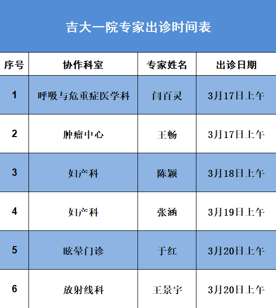 【最新消息】吉大一院专家近期出诊安排(3月17日-3月20日)