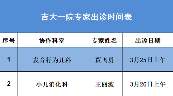 【最新消息】吉大一院专家近期出诊安排(3月25日-3月26日)