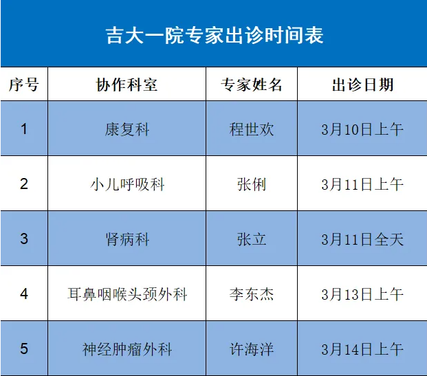 【最新消息】吉大一院专家近期出诊安排(3月10日-3月14日)